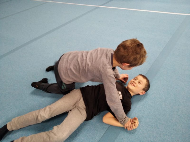 Après avoir défini les règles d’or (règles à respecter pour ne pas faire mal ou se faire mal) et après un bon échauffement, nous avons pu nous lancer dans différents jeux : les anguilles et les crapauds, la bouteille, le “retourne tortue”…