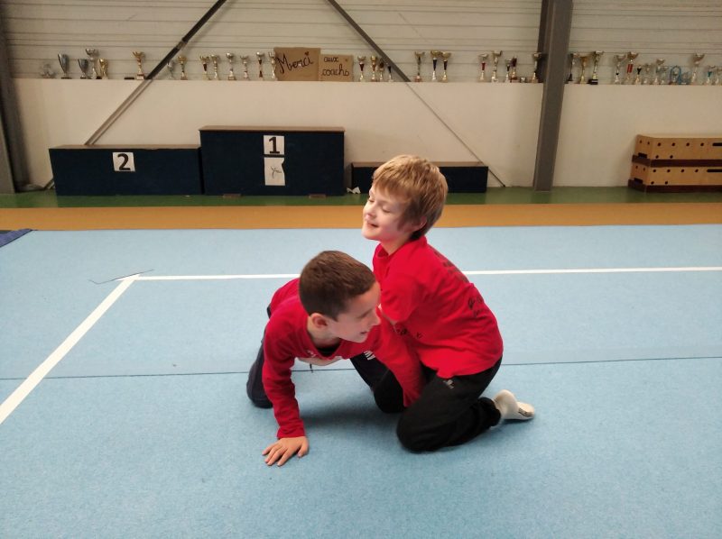 Tous les vendredis, nous nous rendons à la salle de gym. Nous avons découvert une nouvelle activité sportive : la lutte.