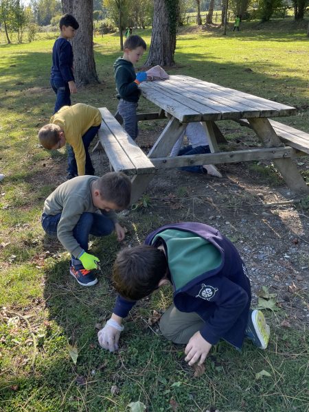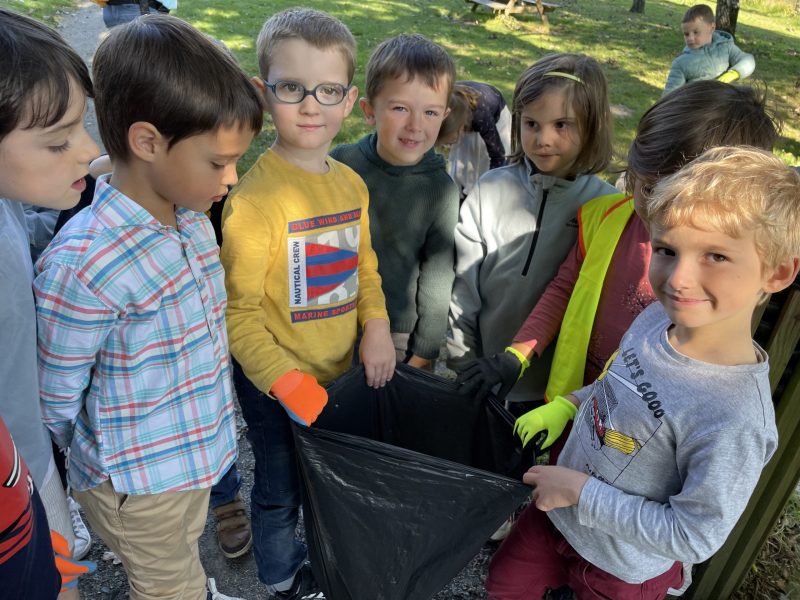 Le 9 octobre, nous sommes allés au lac. Nous avons pris des sacs poubelles et nous avons mis un gant. Nous avons ramassé les déchets (bouteilles, mégots, bouchons, papier, emballages, mouchoirs, masques…). Puis nous avons trié les déchets dans les poubelles près du lac: les emballages dans la poubelle jaune, les bouteilles dans la verte et le reste dans la poubelle noire. La semaine suivante, nous avons fait une randonnée autour du bourg et nous avons encore ramassé plein de déchets.